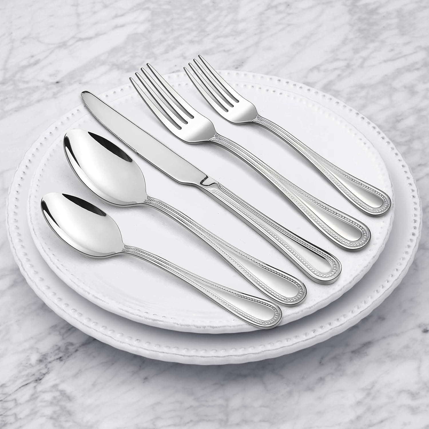 Crafted from high-quality stainless steel, this flatware set features a classic pearled edge design that adds a touch of sophistication to your table setting. The mirror-polished finish enhances the overall look and feel, creating a sleek and modern aesthetic.